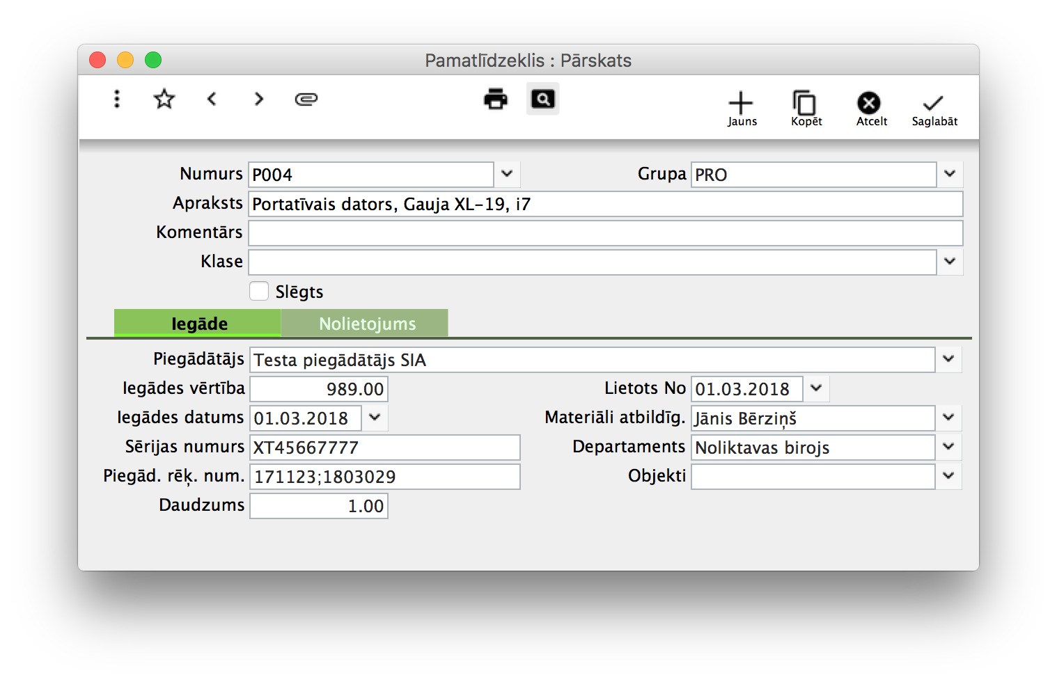Kā izveidot jaunu pamatlīdzekli?