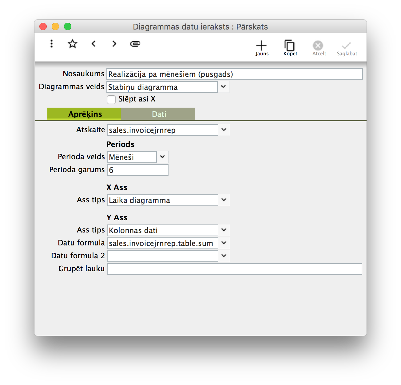 Kā iestatīt atskaites attēlošanu kā datu diagrammu?