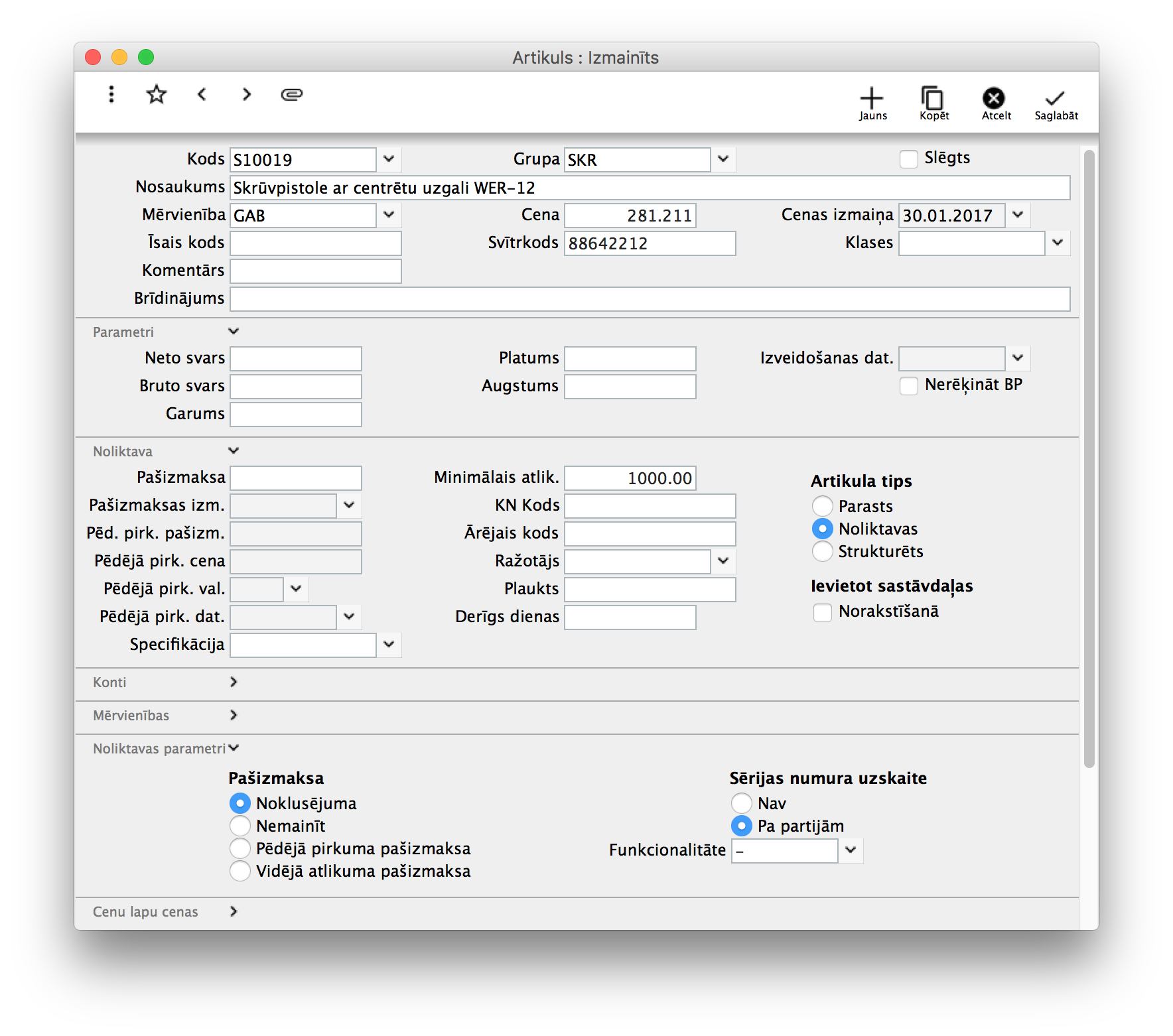 - Kā izveidot artikulu ar uzskaiti pa partijas numuriem/sērijām?