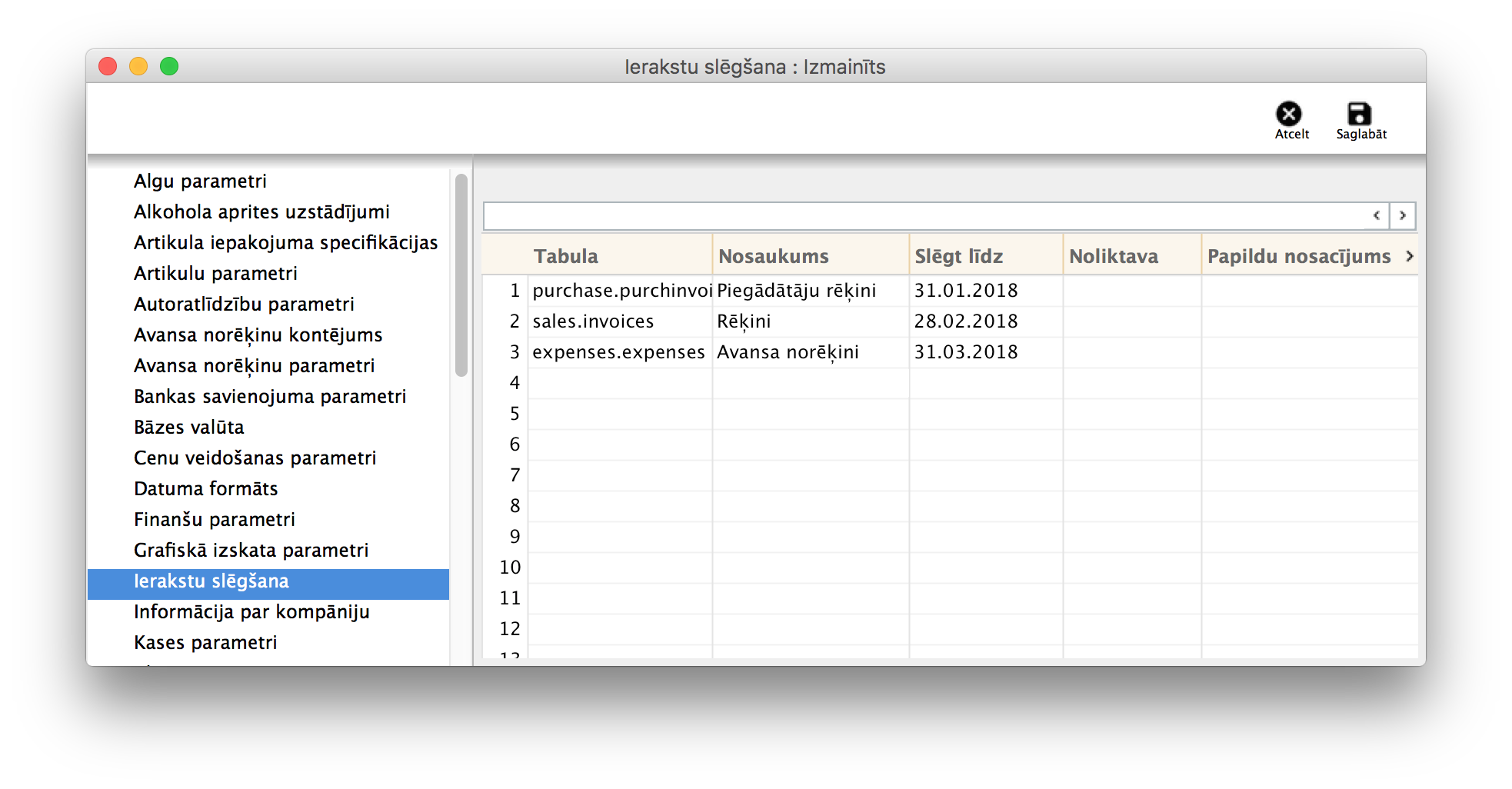 Kā slēgt ierakstus?