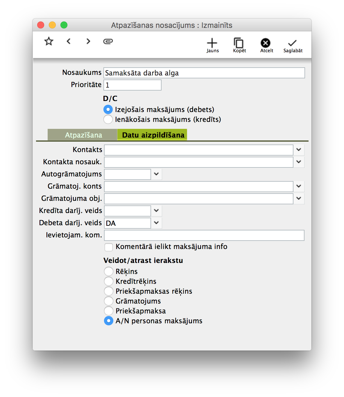 Kā izveidot atpazīšanas nosacījumu algai?