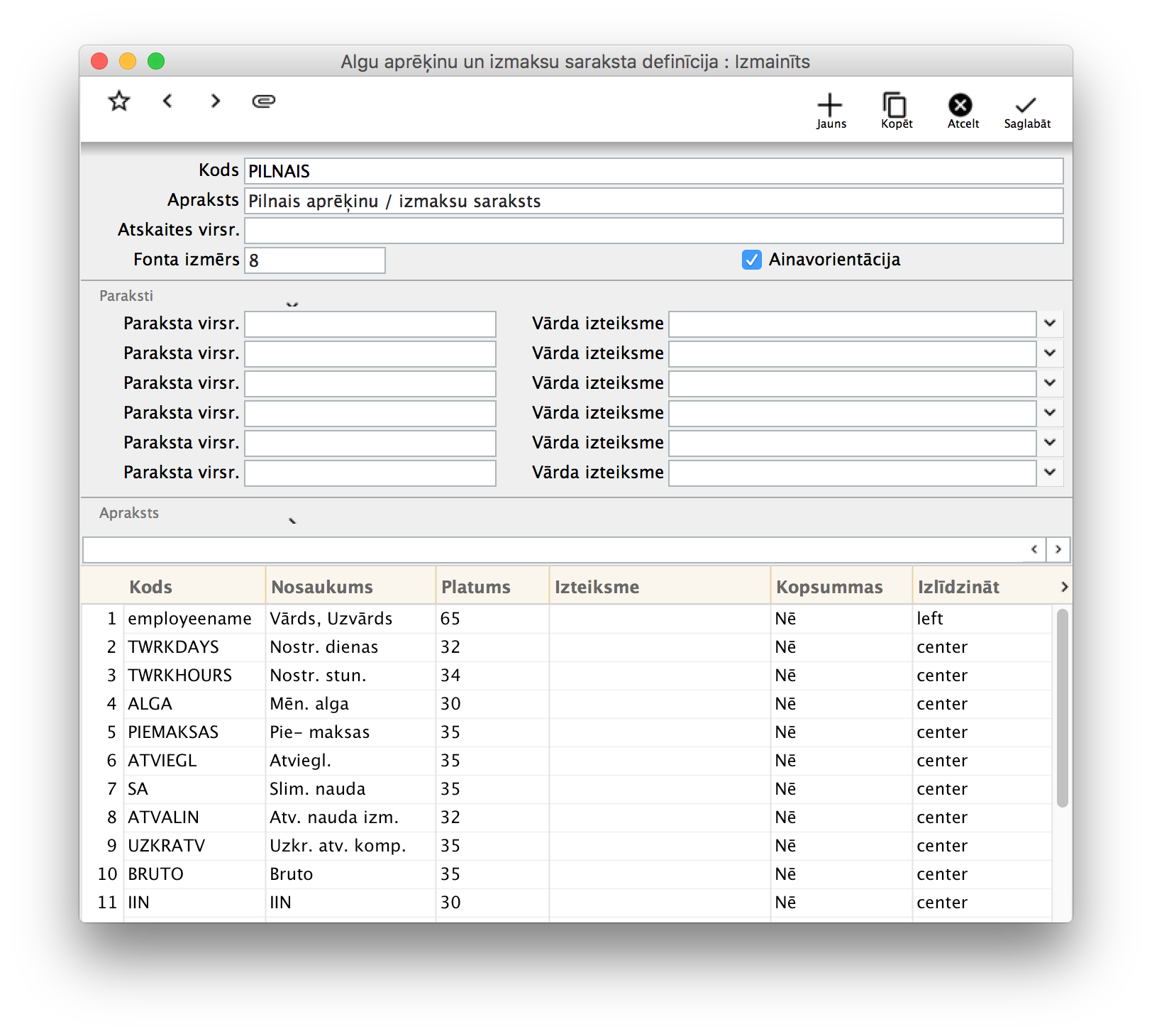 - Kā mainīt Algas aprēķinu / Izmaksu sarakstu atskaites vizuālo noformējumu?