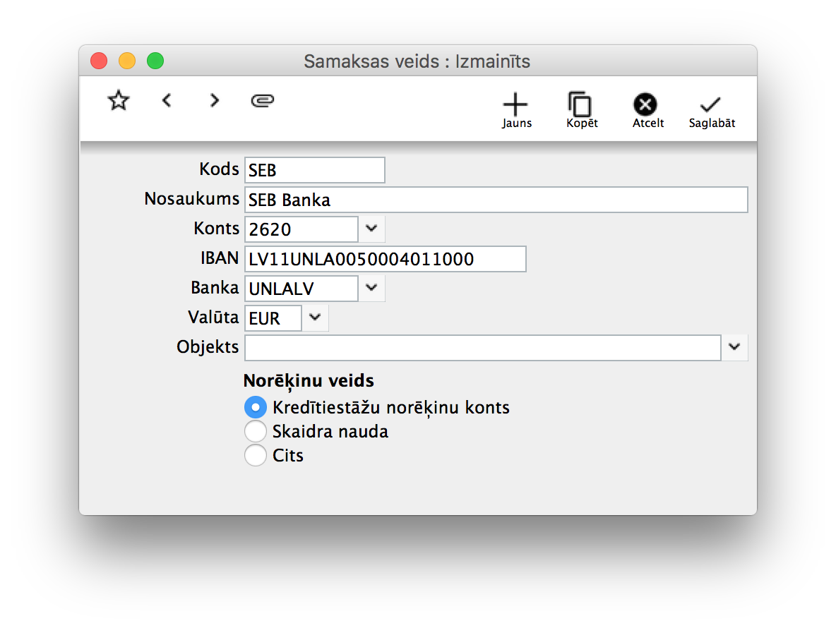 Kā izveidot samaksas veidu?