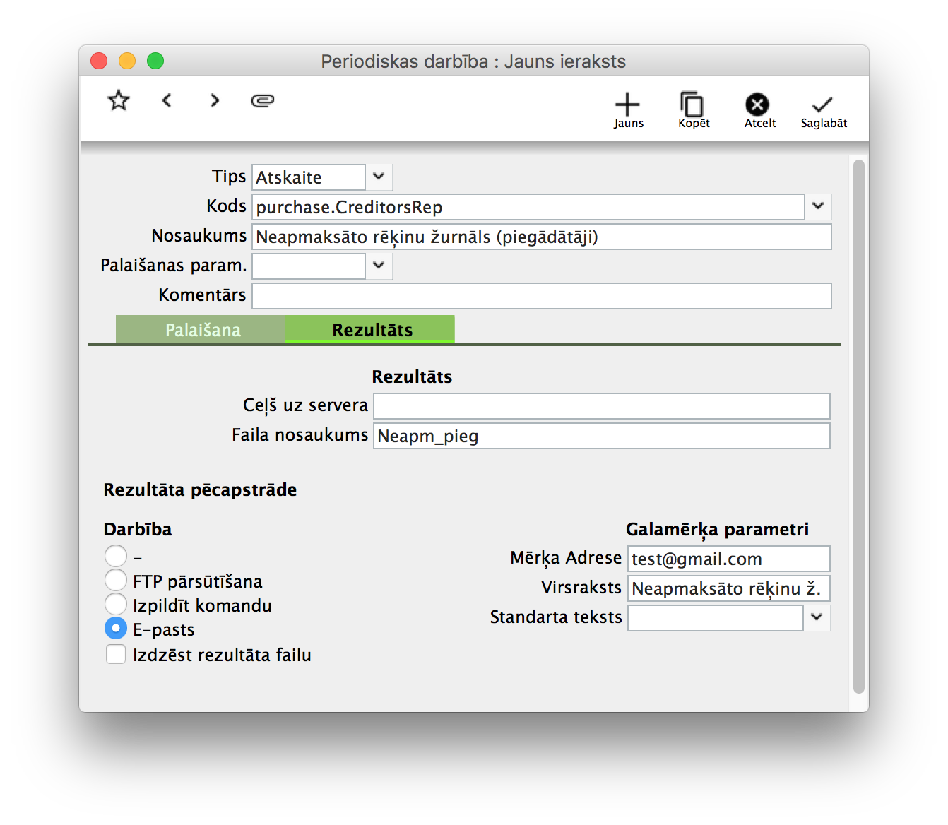 - Kā iestatīt atskaites periodisku nosūtīšanos uz epastu?