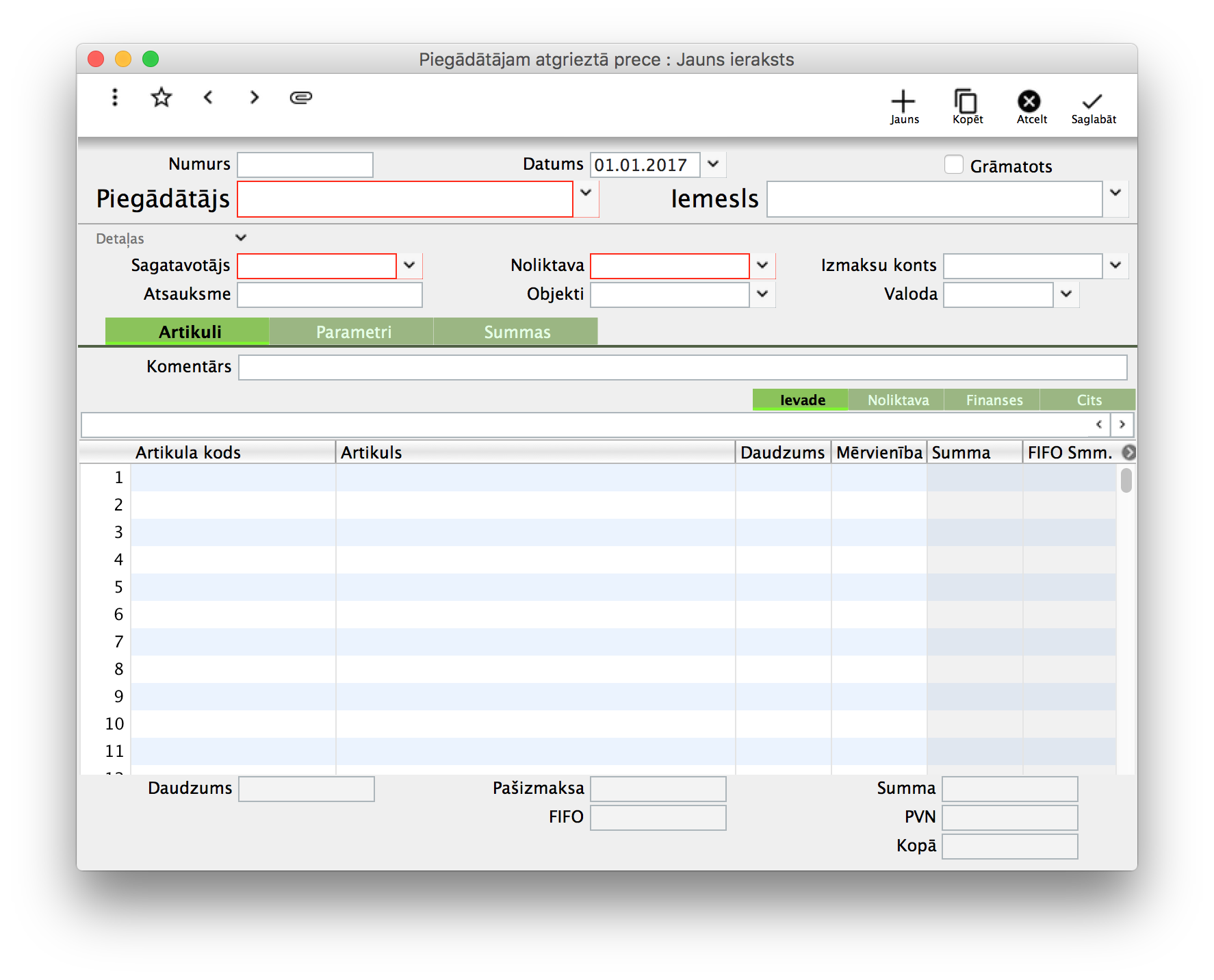 Piegādātājam atgriezta prece
