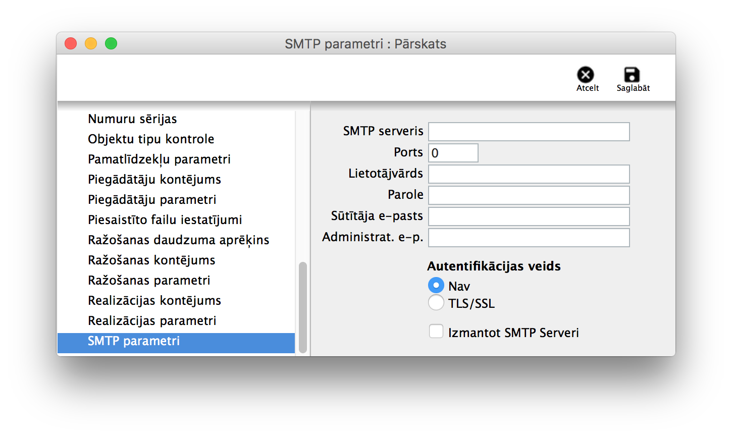 SMTP parametri